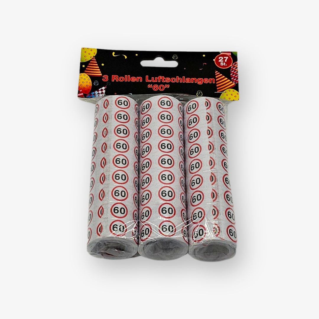 Die Luftschlangen 3er für den 60. Geburtstag sind ein Muss für jede Party. Sie sind lebendig und festlich!